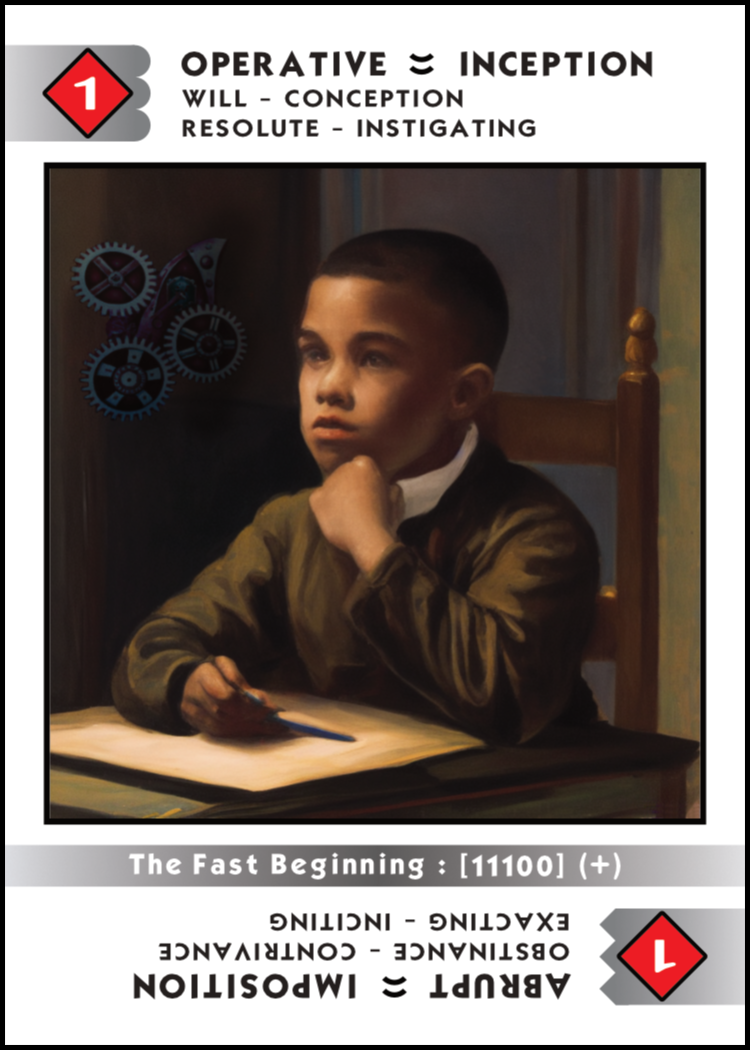 AUSPICE / AWARENESS: CHILD - MINOR M 1 of [+] Diamonds - [11100] Spark! igniting, elsewise fading COURT - (one half) The Witty Entertainer Hearing the Brain